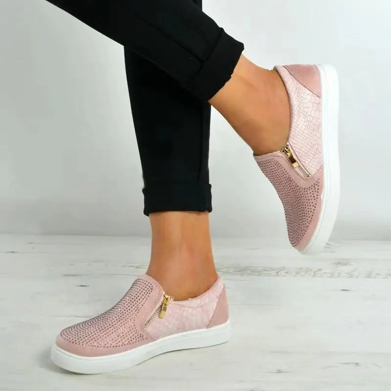 New Hot Selling Couples Shoes Double Zipper Man-made Diamond Snakeskin Shoes Large Size Casual Flat